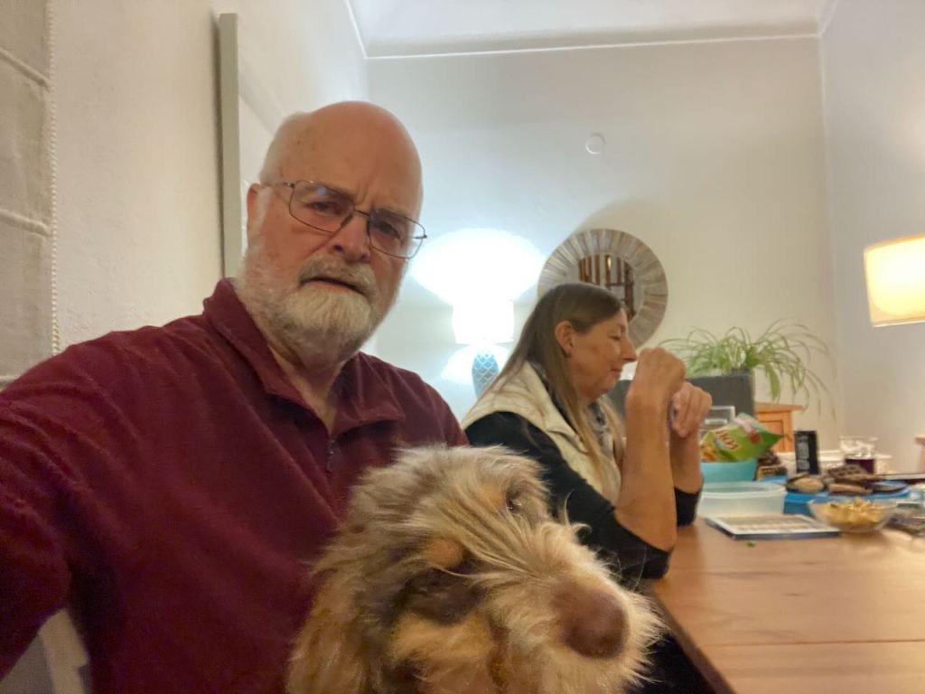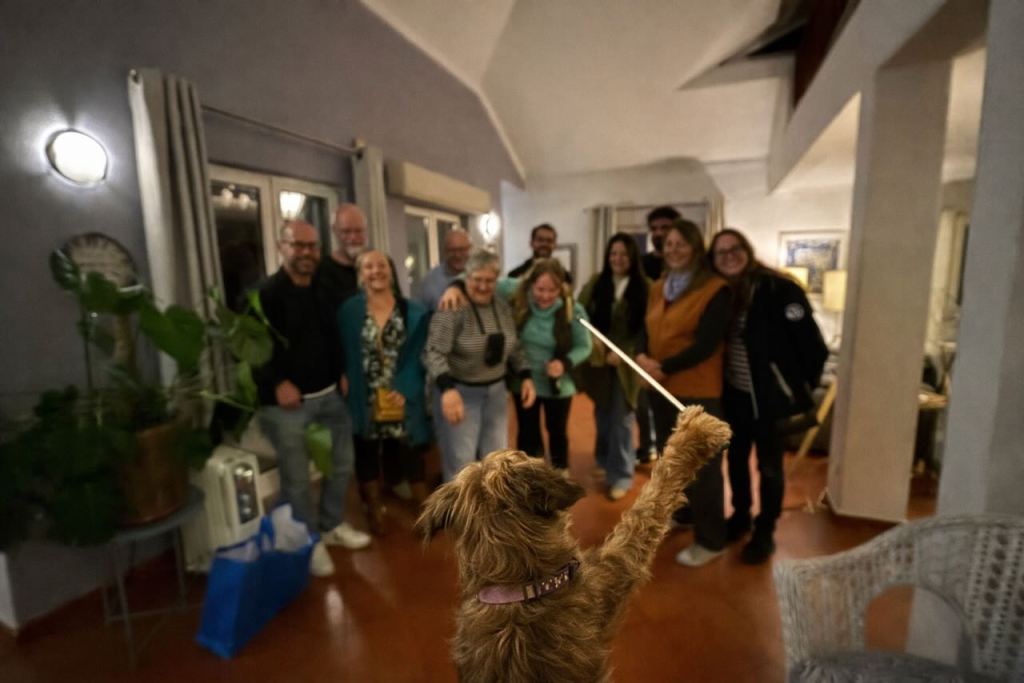 The photo on the left was taken during a party at my house, and I thought it was cute so I asked AI to make a few changes to it. Mel is definitely a maestro, she had an entire group of strangers (to her) fawning over her constantly, and she worked the room like a pro.