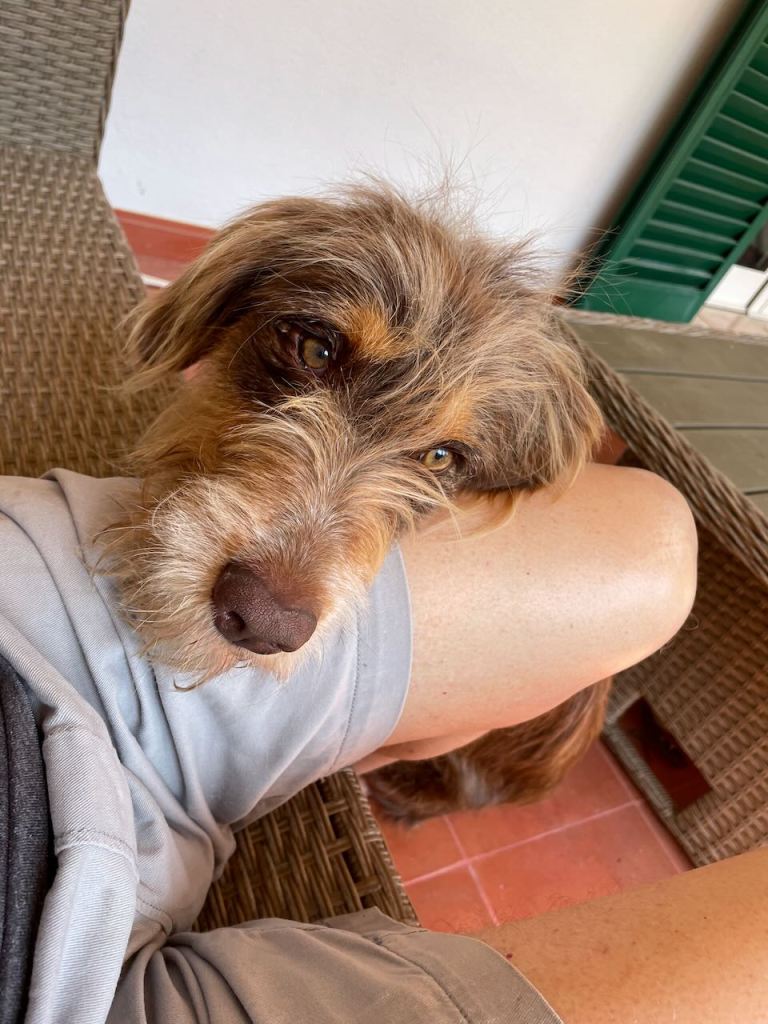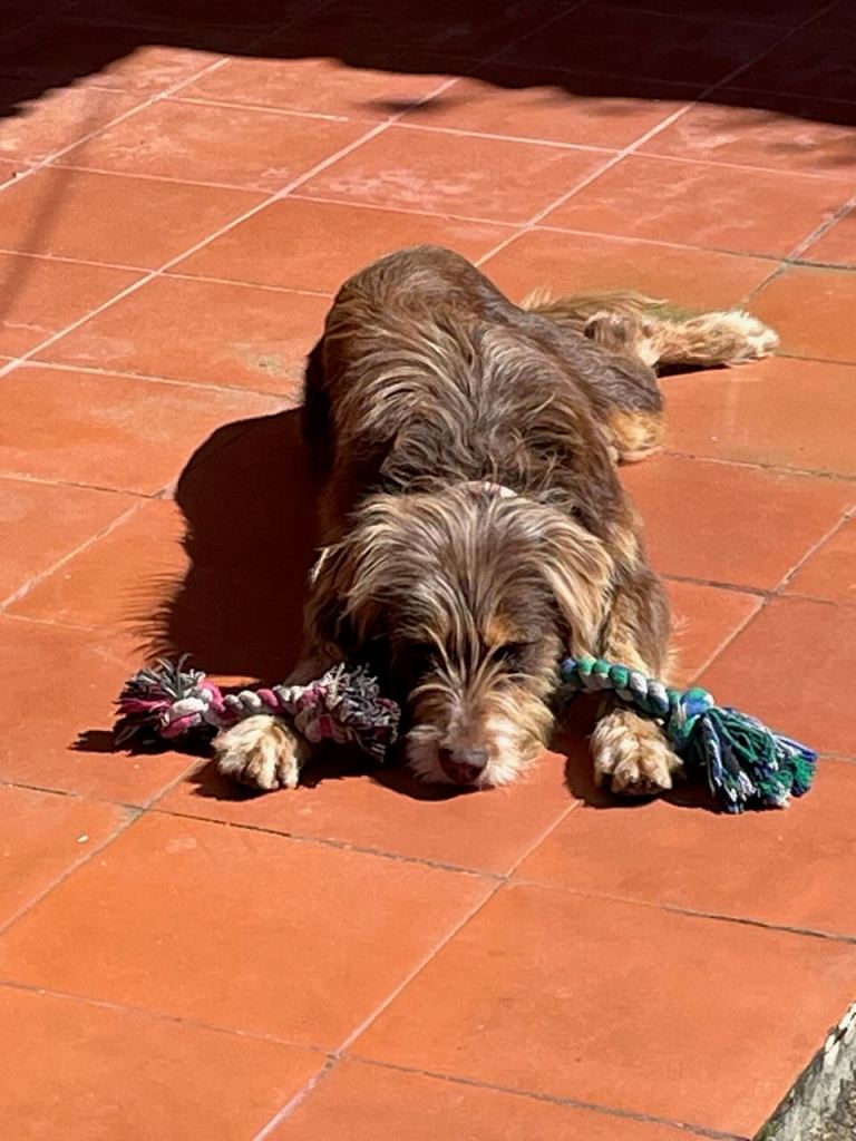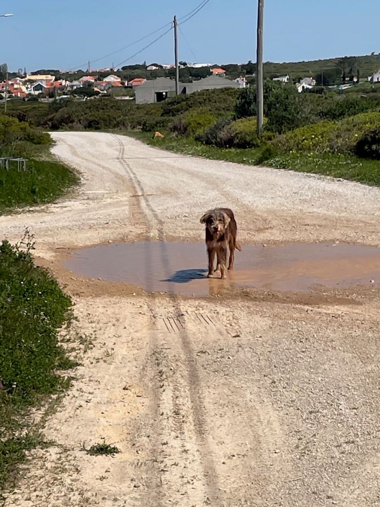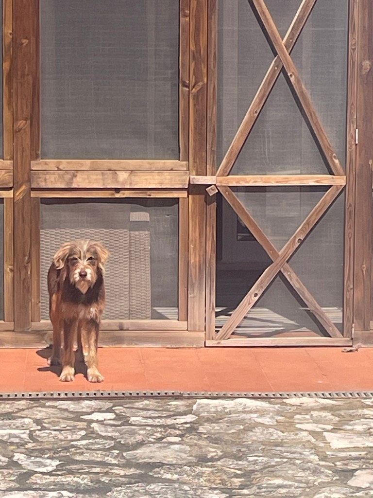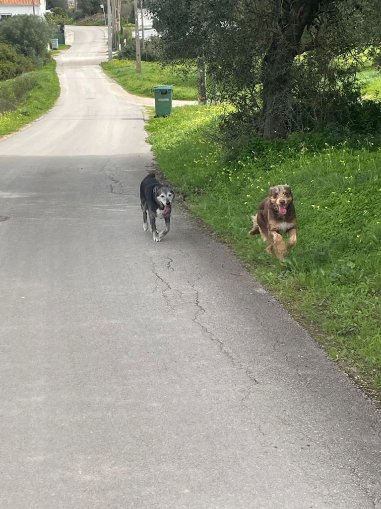So now I have the best of all worlds. I have a dog who adores me, and vice versa, and who shows up in the morning and hangs out all day, then returns to her main home at night. Once in a while she’ll make it clear that she wants spend the night by refusing to even go outside. Since she gets fed at her other home in the morning, after I get up it’s not hard to get her to finally go up there. In this part of Portugal it’s not unusual for people to leave their dogs outside most of the time. I’m imagining that without me, Mel runs around the neighborhood with a bunch of teenage dog rabble-rousers trading doggie treat recipes and playing pranks on other homeowners by ringing the doorbells and then running away giggling. They probably also toilet paper trees and put lit firecrackers in mailboxes.