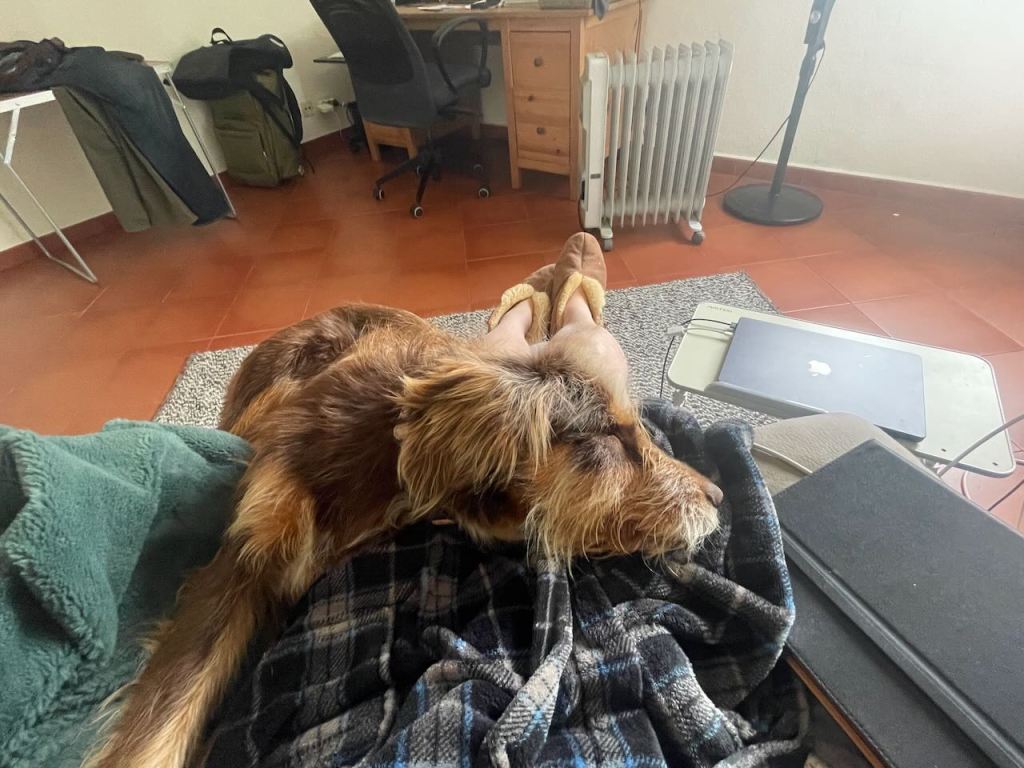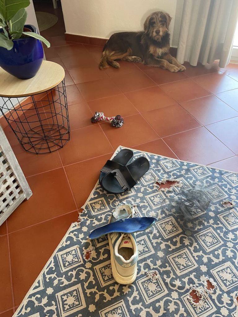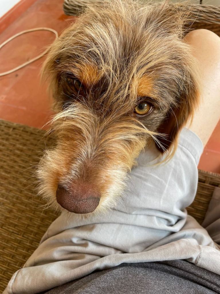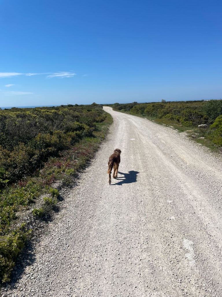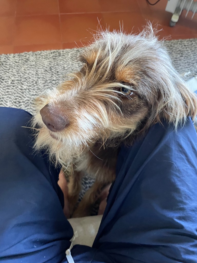 So now I have the best of all worlds. I have a dog who adores me, and vice versa, and who shows up in the morning and hangs out all day, then returns to her main home at night. Once in a while she’ll make it clear that she wants spend the night by refusing to even go outside. Since she gets fed at her other home in the morning, after I get up it’s not hard to get her to finally go up there. In this part of Portugal it’s not unusual for people to leave their dogs outside most of the time. I’m imagining that without me, Mel runs around the neighborhood with a bunch of teenage dog rabble-rousers trading doggie treat recipes and playing pranks on other homeowners by ringing the doorbells and then running away giggling. They probably also toilet paper trees and put lit firecrackers in mailboxes.