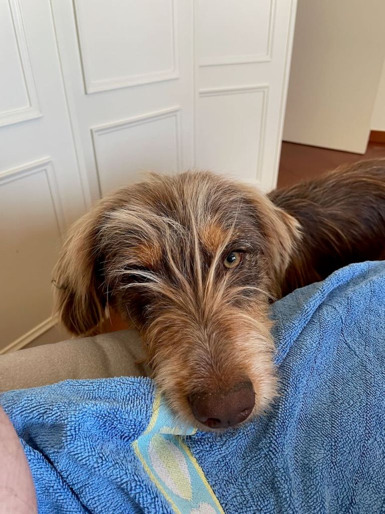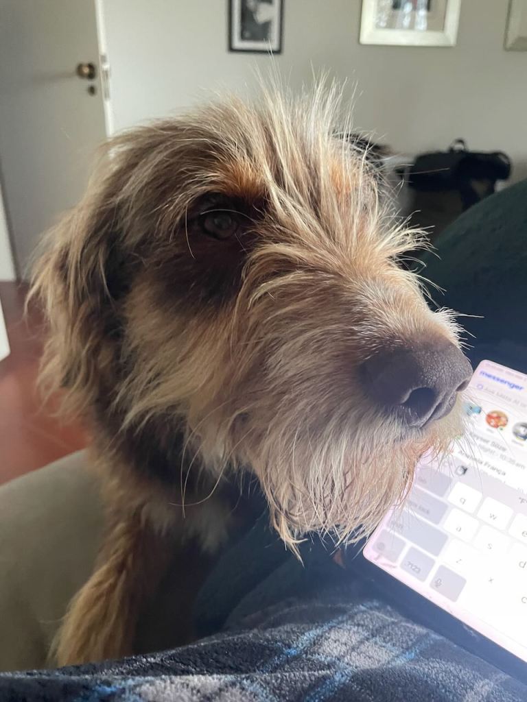 The owner’s university-going daughter is apparently the one in their household who is the most responsible for Mel, and we’ve forged a co-parenting relationship whereby we text each other regularly on all things Mel. If Mel is at my house and the daughter is home and wants some Mel-time, she just texts a short message telling me to send Mel home. I just go outside, open the gate, start walking back toward the car, and she’s off to the races.