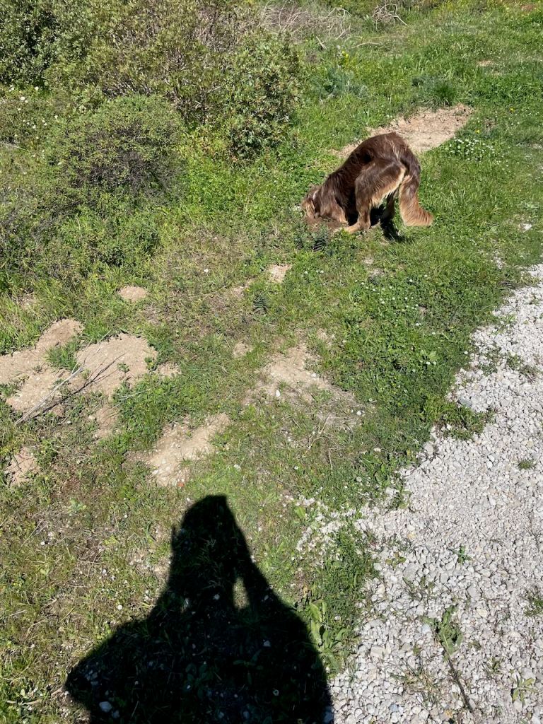 Here she is on our walks. She loves running through the expansive tick housing developments, generously offering a free ride into town for any tick that wants to hop on. Occasionally she’ll encounter another dog, and after brief introductions, they run pell Mel (ha!) all over the place, sometimes disappearing for a quarter of an hour or more. But she always finds me before I get too far down the road.