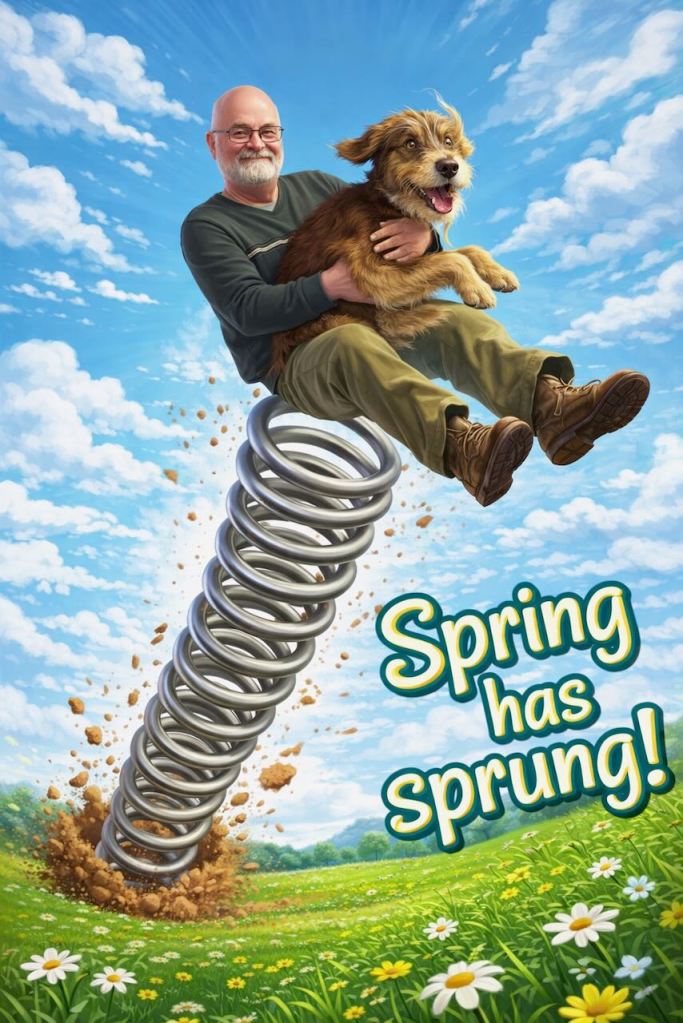 She also is photogenic enough to be a dog model. Here’s an ad I made for Spring to use if it ever gets its act together and starts advertising, because the popularity of Summer is starting to eat into Spring’s numbers.