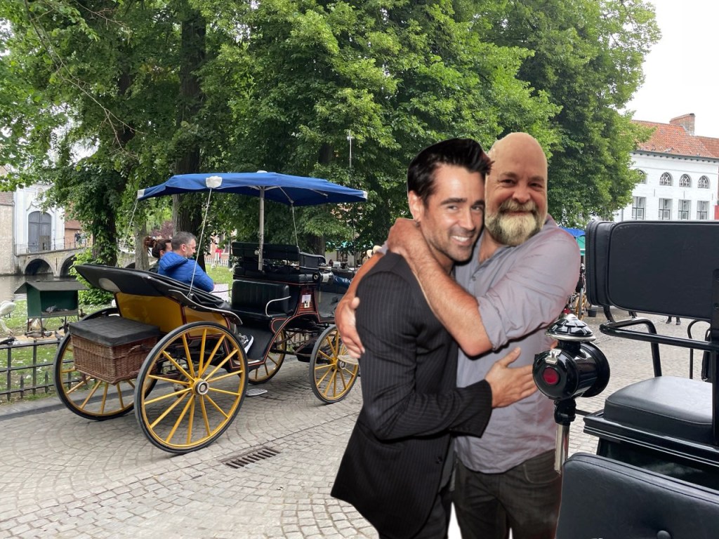 So when we ended up in Paris for the third time, I noticed that Bruges was only a three hour drive away. Since my friend Colin Farrell had been bugging me for a meet-up anyway, I decided to give him a call and we agreed to meet in Bruges. He said he’s always felt bad that one of his first lines in the movie was, “What a shithole.”
