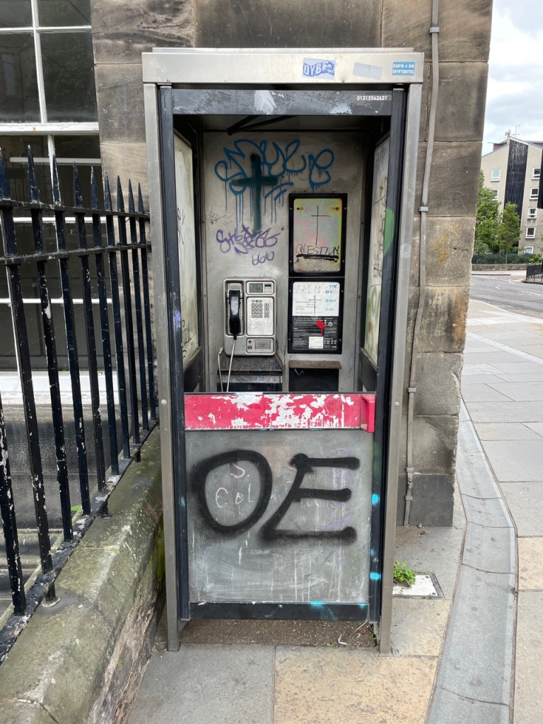 I don’t think there are many places in the world that still have telephone booths. This phone actually works: I picked up the receiver gingerly with two fingers after pouring most of a bottle of rubbing alcohol over the entire mechanism, donning rubber gloves, and then a gas mask. Can you believe we used to just grab those things and rub our lips on strangers’ spit residue just to make a collect call from prison? I mean, er, some of you, not me, he he. Anyway, after retiring this booth from being a Covid Hot Spot, I think it has now been converted to a canvas for graffiti artists. Albeit with a working phone in case they need to order more spray paint from Amazon.