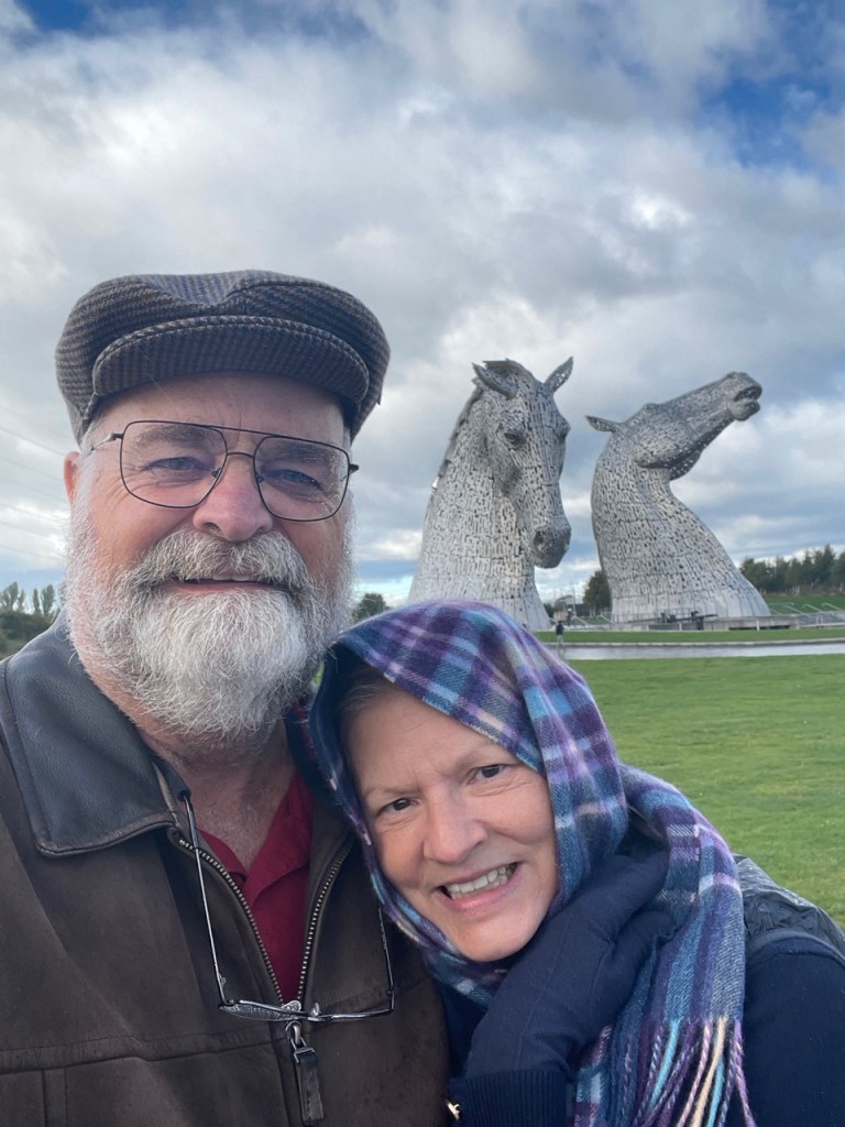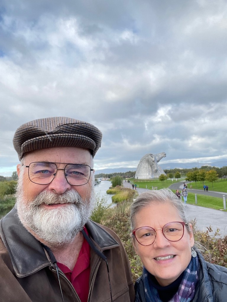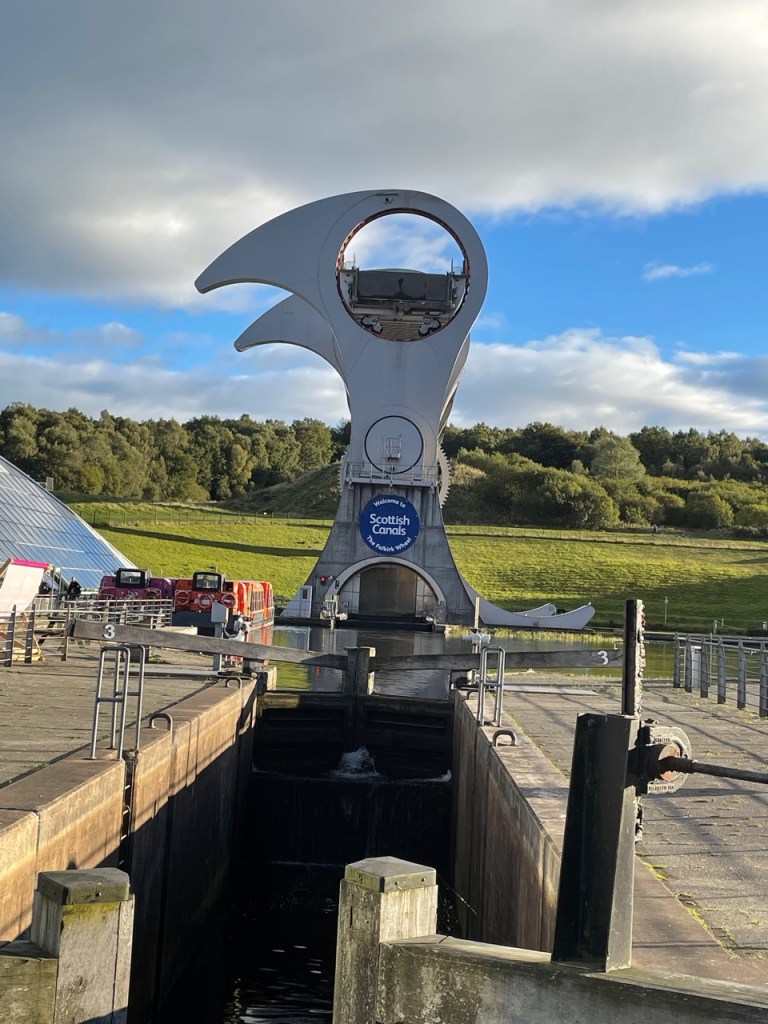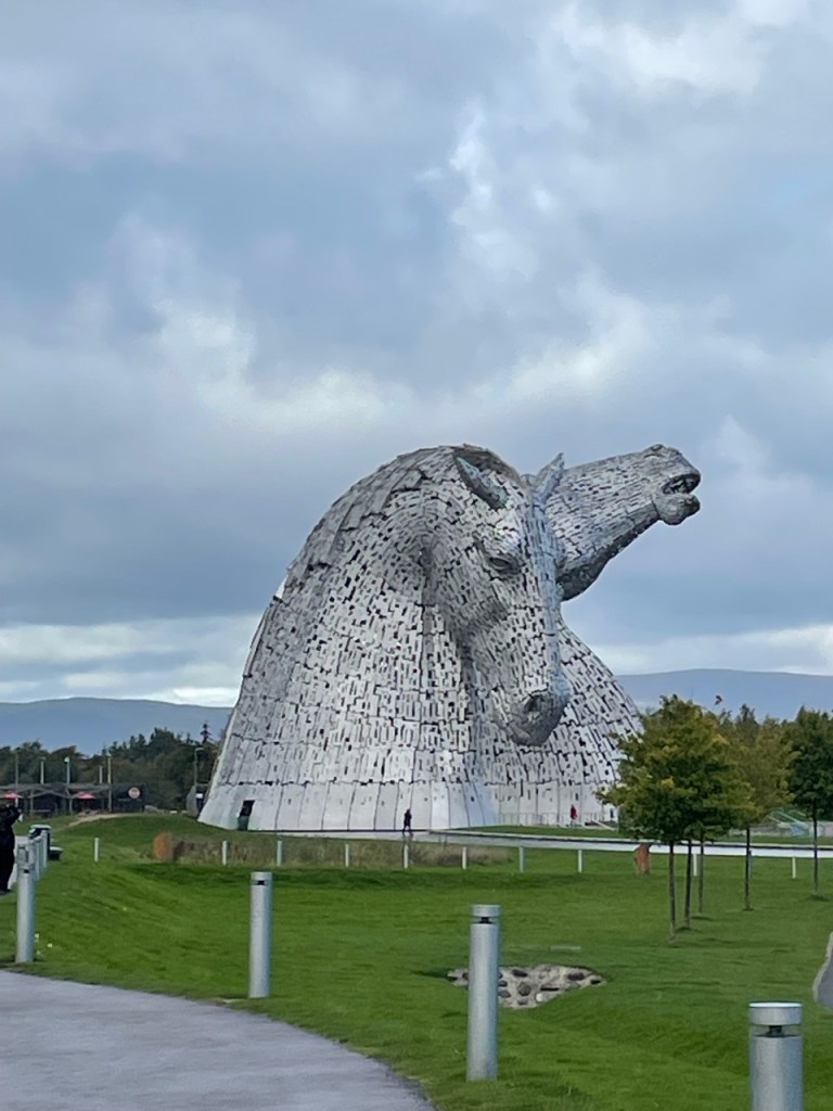 About 25 miles outside of Glasgow is an art creation called “The Kelpies.” The Kelpies are a mythical creature, described as a shape-shifting black horse spirit that’s able to adopt human form, and inhabits the Scottish lochs (which is how you say “lakes” with a Scottish accent, or it can also be the sound you make when you’re getting ready to hock a loogie). The art was also created to commemorate the large canal horses that, previous to the Falkirk Wheel, pulled boats down the canals.