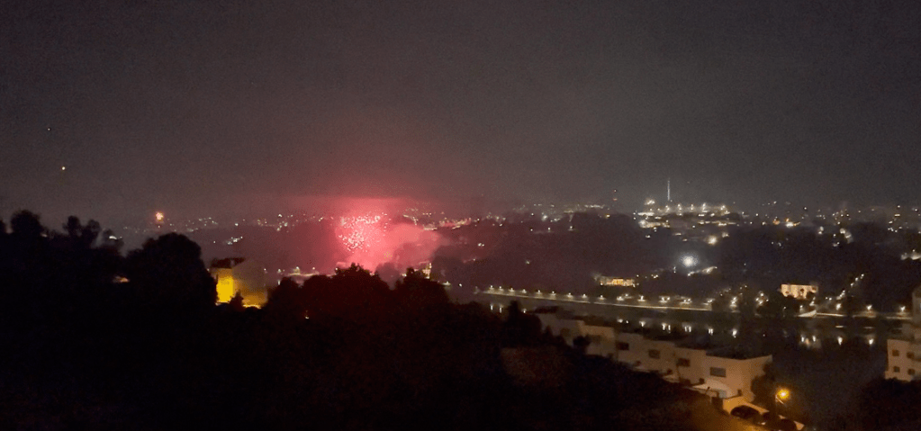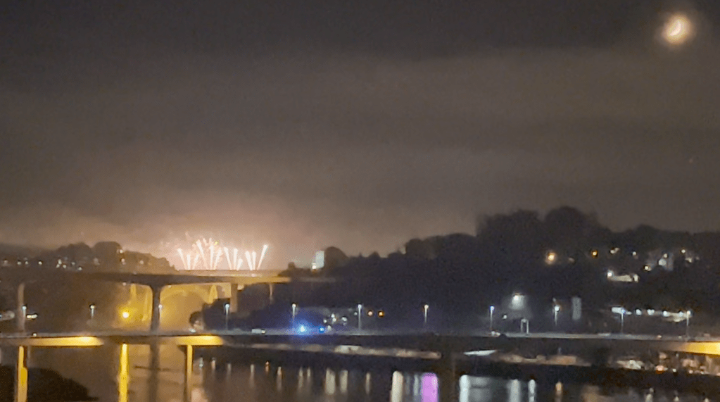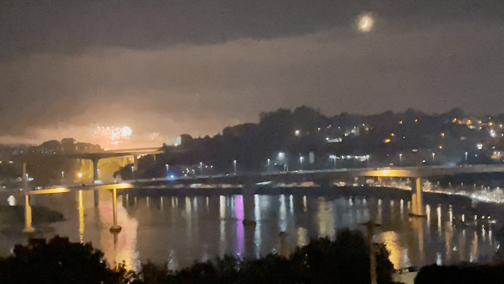We were fortunate enough to have booked an apartment that overlooked Porto from the other side of the Douro River. I’m not much on fireworks nowadays, but I have to tell you that this was easily the most impressive fireworks display I have ever seen. There were at least half a dozen launch sites we could see, and one of the main ones did their thing for nearly an hour.