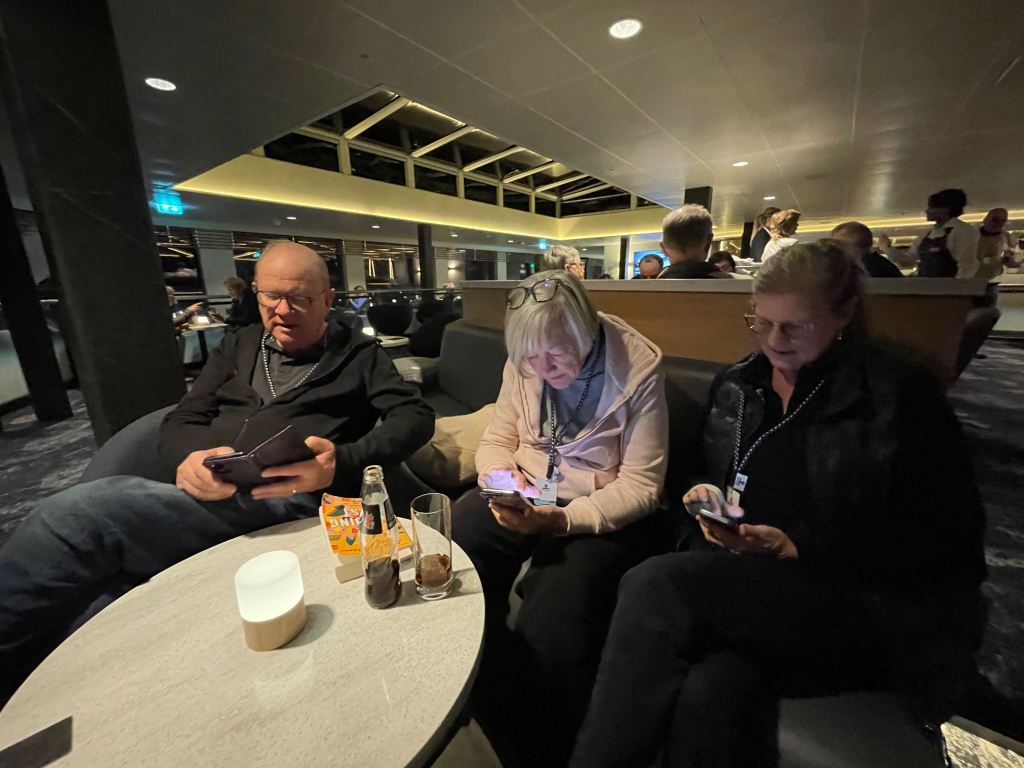 Other than fine cuisine, the ship offered a ton of entertainment options, such as free wifi. Actually, that’s about it. I mean, what more do people need nowadays other than being able to stick their nose into their phones anyway? (To be fair, they did have a jigsaw puzzle as well). Despite what it looks like, the four of us gabbed incessantly. We learned more about each other than I knew about Carolyn before I married her (more or less), and parted ways after the voyage still speaking to and liking each other! I mean, what are the odds of that?