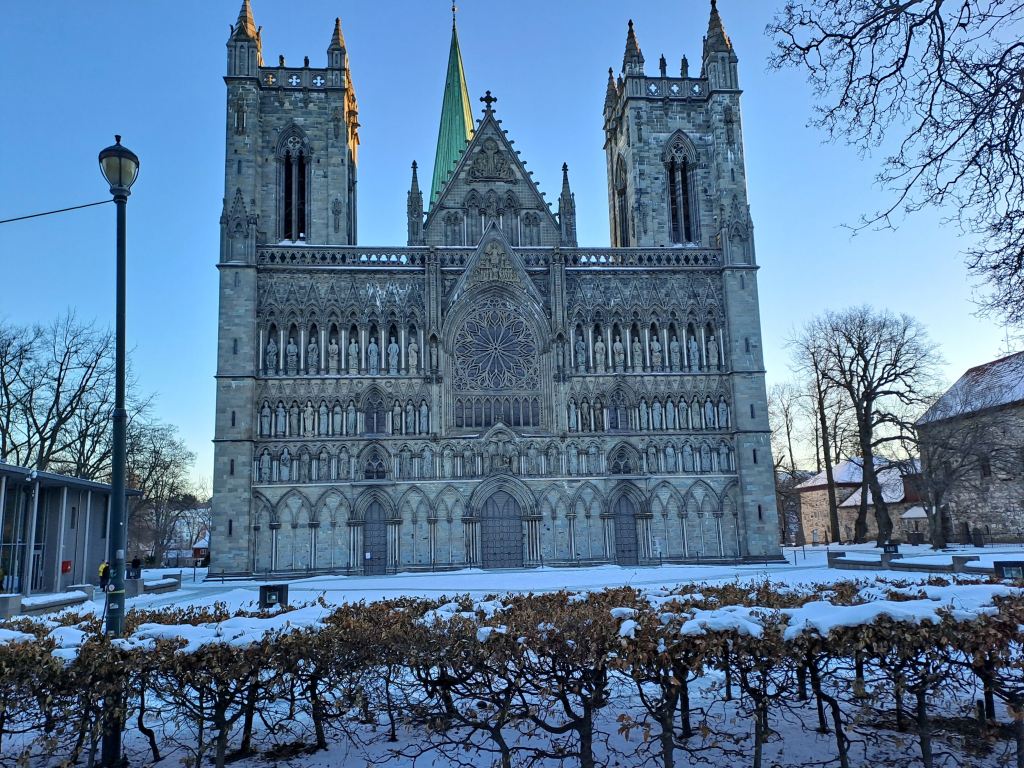 We trudged through the city until we got to the Number One Bestest Site In All of Trondheim, the Nidaros Cathedral. True Trivia (as opposed to the stuff I just make up): Trondheim used to be called Nidaros. It was changed to Trondheim in the 16th century, back to Nidaros in 1930, and then back to Trondheim a year later. Which is good, because I think Trondheim is one of the coolest city names ever. I can just see a burly, full-bearded Viking king standing tall, slamming the base of his bondeøk on the ground while bellowing, “This… is… TRONDHEIM!” (A Bondeøk is a Norwegian battle axe, not to be confused with any particular Viking wife of the time.)