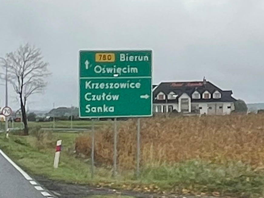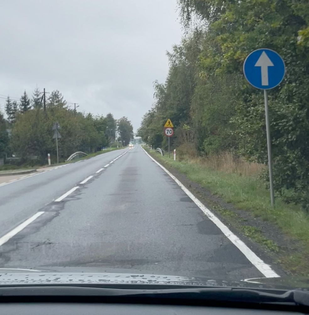 The purpose of this boring photo of the road is to remind me to tell the story of what it’s like to drive in Poland. At least on the two-lane roads (we were told there aren’t that many four-lane highways in Poland, although we found at least one), you discover that 70 km/hr is pretty much the standard cruising speed, but you have to lower it to 50 km/hr and sometimes 30 km/hr when entering a town. Often the towns are close enough together that within a minute you go from 70 to 50 to 30, and then just as quickly back to 50 and then 70 because many of the towns are quite small. This happens over and over and over again. It’s like driving in a mini version of Groundhog Day.