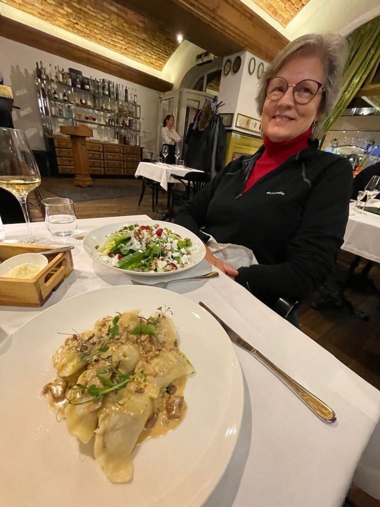We found a nearby restaurant that featured good old fashioned Polish food (we’re not foodies, but I always try and seek out the local dishes just to slightly immerse into that country’s culture). I promised our friends who couldn’t make the trip with us that I’d try and report on pierogi: Polish dumplings, a common food in Poland. It’s a dish invented almost 800 years ago that stuck around because potatoes are a cheap staple. The dumplings themselves don’t have much flavor, so it’s all about what’s inside. They didn’t have any with hot fudge sundaes in them, so I had to settle for whatever this was, I don’t remember. But it was tasty.