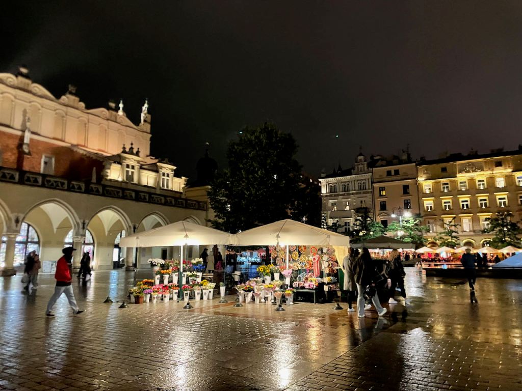 I could go do some research and detail the names and purpose of each building (actually, many of them were churches and castles so we hardly needed much help there), but the truth is we didn’t much care about the details while we were seeing them, so I’m imagining most readers wouldn’t either. We just enjoyed their grandeur and beauty. I did find it interesting that the largest and most imposing building is the Cloth Hall (Sukiennice), rebuilt in 1555, in the photo below. Basically it’s the world’s oldest shopping mall. We figured it had to be some sort of palace or government building, but no, it was, and is still, a shopping mall.