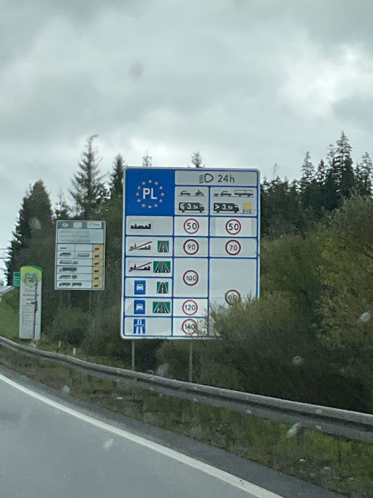 We took a picture of this bus passing us because… a bus passed us. We were doing the speed limit. There was one time I was probably doing something like 10km or so over the speed limit for about ten seconds, we got a nice big flash in our face telling me that we’re gonna have yet another country’s ticket coming. You know, in Iceland we never saw one speeder. If the sign said 100, then by golly that’s what everyone did. Not so in Poland, despite the fact that they have plentiful cameras and they’re not afraid to flash drivers. Out of curiosity I looked up speeding ticket averages in Iceland and Poland. Perhaps predictably, Iceland’s ranges from USD $195- $460 or more, while Poland’s ranges from $25 to $100. I think I’ll be finding out how true that is soon enough.