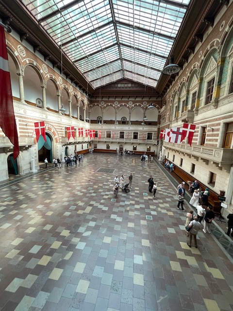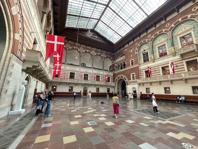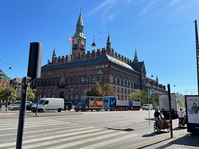 The famous Tivoli amusement park is right downtown, not far from Rådhuspladsen, or City Hall Square, which has lots of interesting things to see. Here they proudly display The Dannebrog, the Danish flag, which is the world’s oldest continuously used national flag, dating back to 1219, which my calculator says is a freakin’ long time ago.