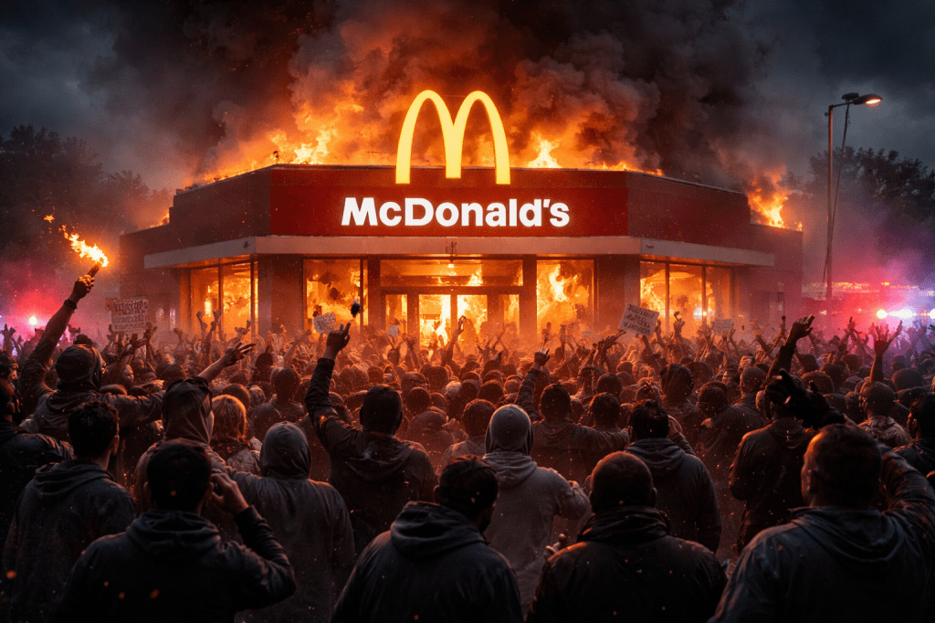 Now just imagine if, say, all the American McDonalds, which you have to admit is kind of a quintessential example of food efficiency, suddenly became the culinary tradition for New Years Eve, with an influx of customers on one day representing an order of magnitude (which is another way to order a Double Big Mac and its 780 calories) over its usual daily business. You’d have cars lined up all the way back to and onto the freeways, there’d be fist fights, all sorts of shootings, cars on fire, people screaming, protesters with signs chanting “Death to Consumerism!” while being harassed by big-bellied people deriding them for being woke and smelling like patchouli. And you’d still have to wait in line for three hours to get your food.