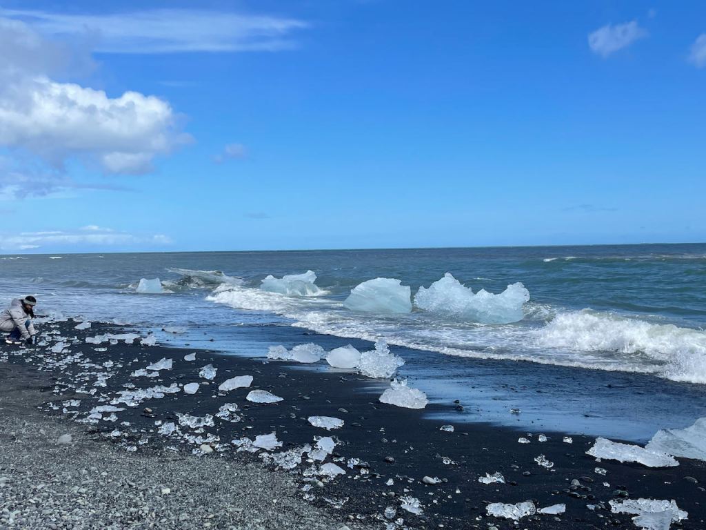 The Jökulsárlón Glacier Lagoon is a lagoon formed by the runoff from Breiðamerkurjökull Glacier (which is often pronounced, “Breiðamerkurjökull”), and is yet another spectacular site where photos cannot do it justice. It’s a bay filled with chunks and pieces of ice, looking much like something you’d find in Antarctica. The water flows into the ocean and feeds Breiðamerkursandur beach. While “Breiðamerkursandur” is obviously one of the easiest Icelandic place names to pronounce, for some reason “Diamond Beach” became a more popular nickname for the beach.