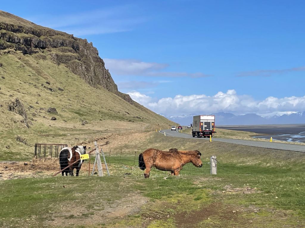 We saw lots of horses along the way. The Icelandic horse is a special breed, smaller than most (but they’re not ponies), and direct descendents of the horses originally brought there by the Vikings. The Icelandic horse is known for its outstanding ability to cross rough terrain and are excellent swimmers. The law in Iceland is that you can’t import a horse, and if any horse leaves the country, it can never return, because it might have some big horse cooties on it. Or in it, actually.